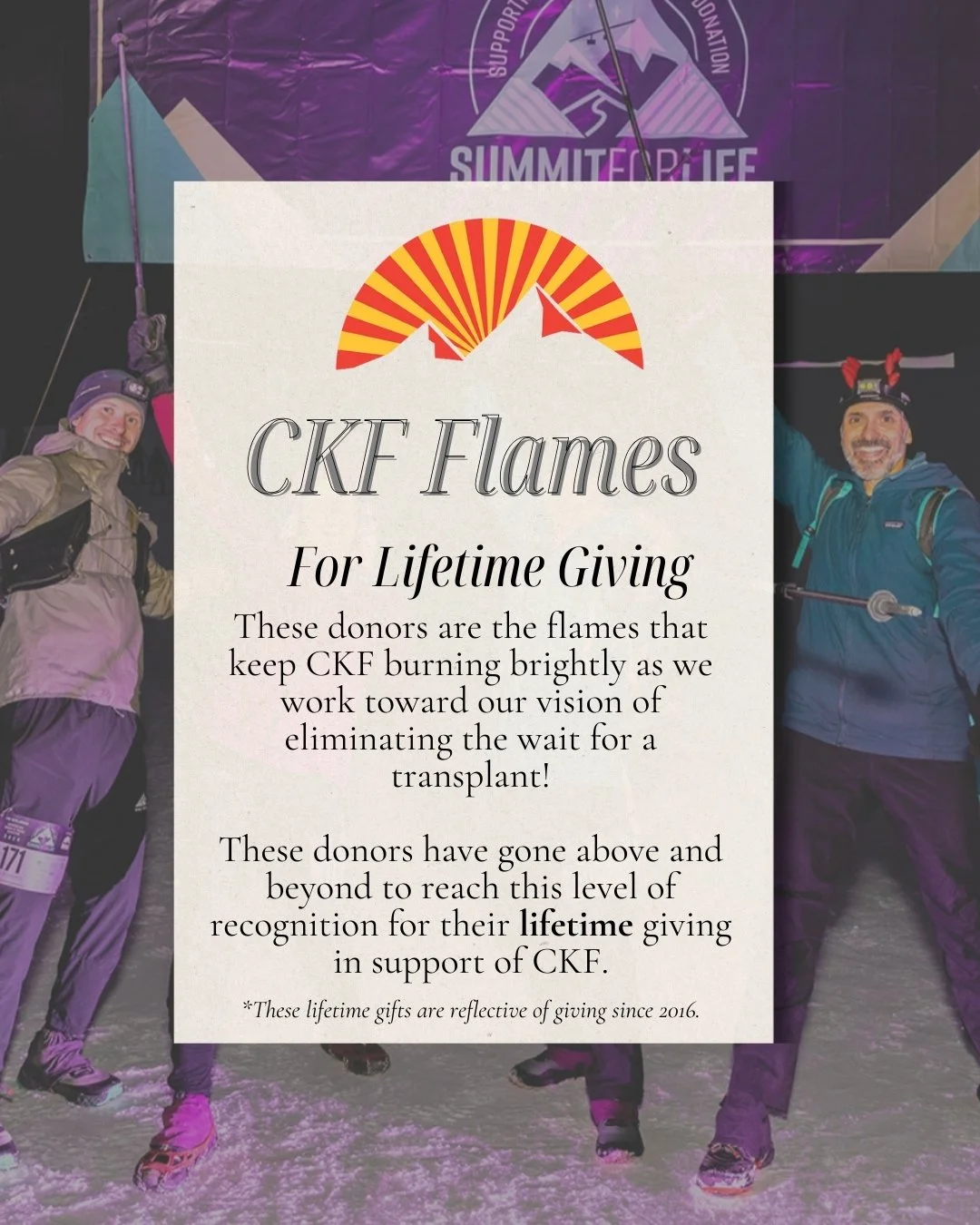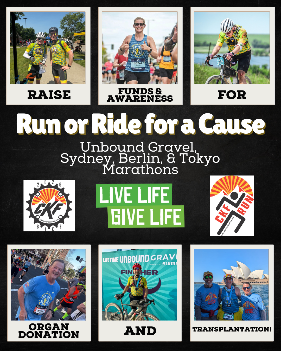 CKF seeks to inspire people to learn more about organ, eye, & tissue donation in order to register as organ donors, & gives inspiration & hope to transplant recipients & those on the transplant waitlist.