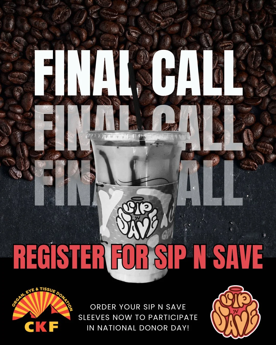 CKF sends free coffee sleeves, coasters, stickers, flyers, and posters for shops to use on February 14th in honor of National Donor Day.