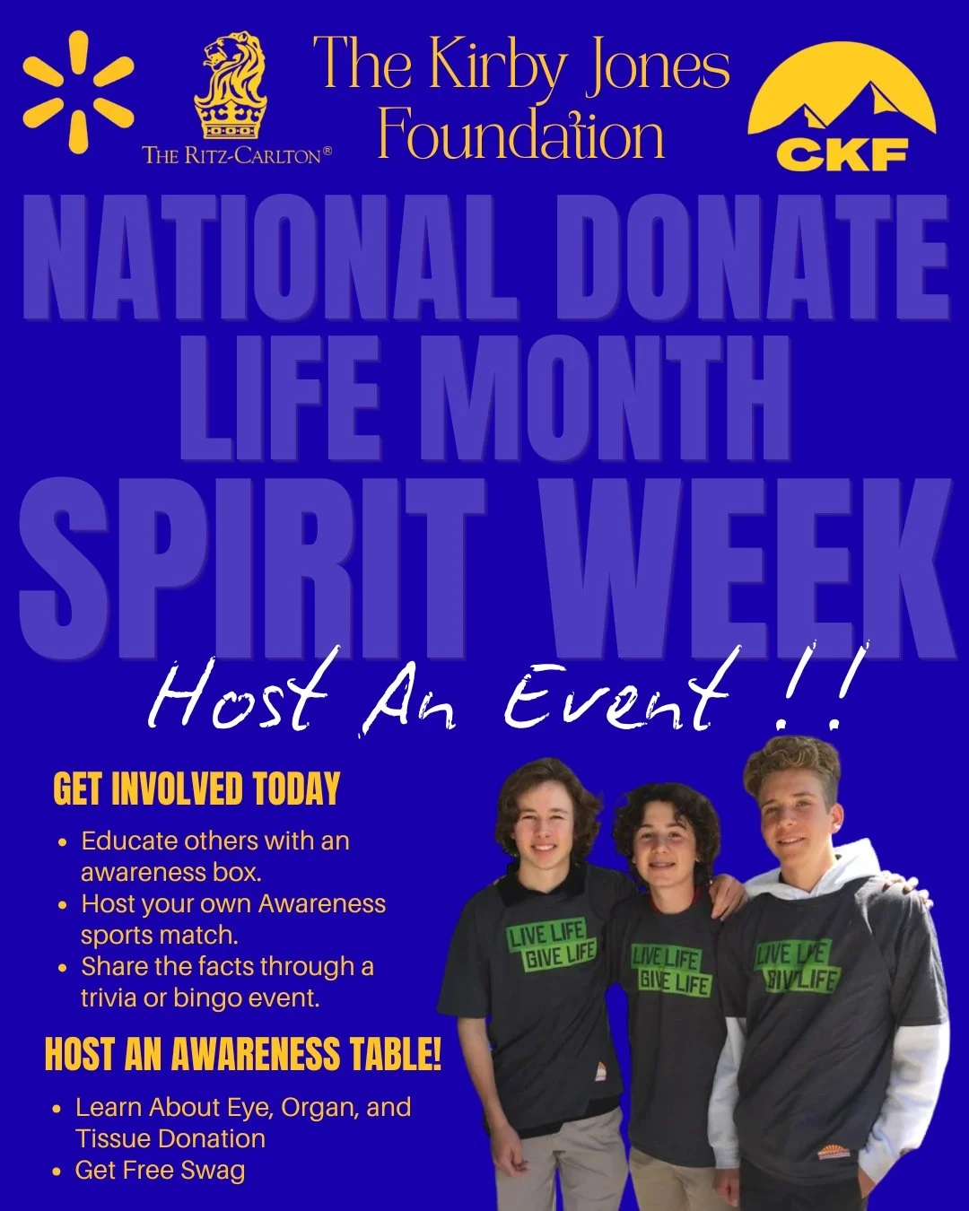 Join CKF as we celebrate Donate Life Month with our Spirit Week. We will support the Donate Life America Spirit Week by offering students the chance to host their own Spirit Week at their school or in their community.