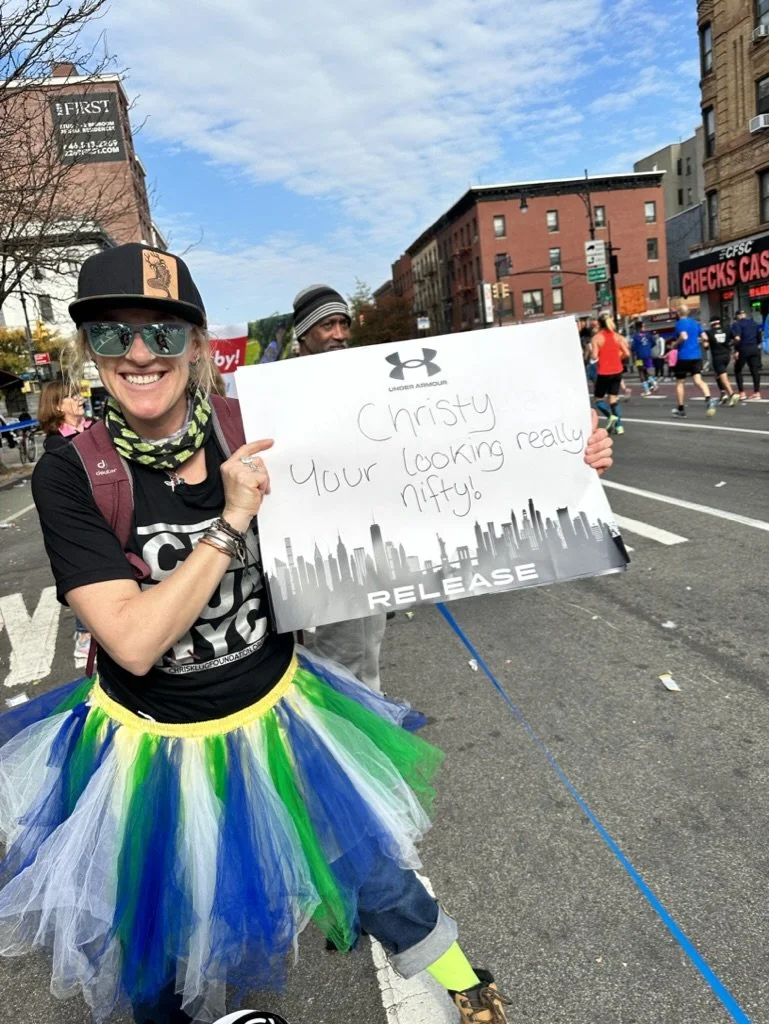 In 2022, Maddie watched her first NYC Marathon. Inspired by the runners taking on this challenging feat, she was moved by the city, and how people from across all 5 boroughs came out to cheer on strangers.
